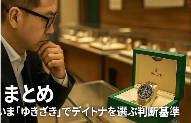 本記事では、**「ゆきざきでデイトナを買う」**という前提で、価格の見方、在庫の追い方、真贋の安心材料、購入時の判断軸までを、過不足なくまとめます。